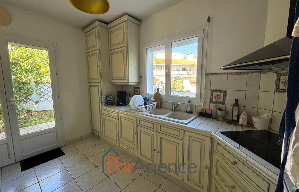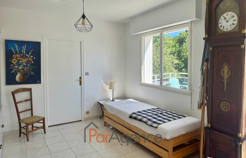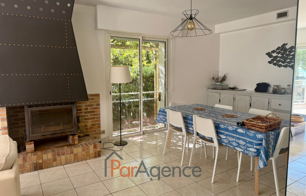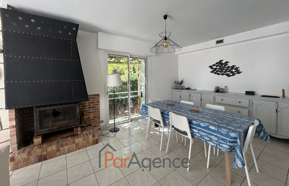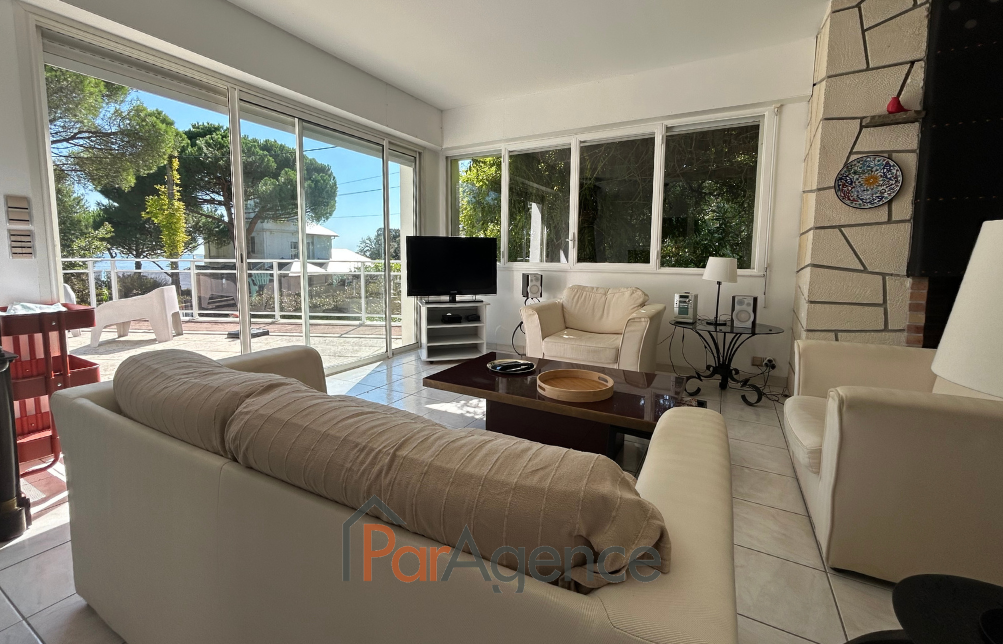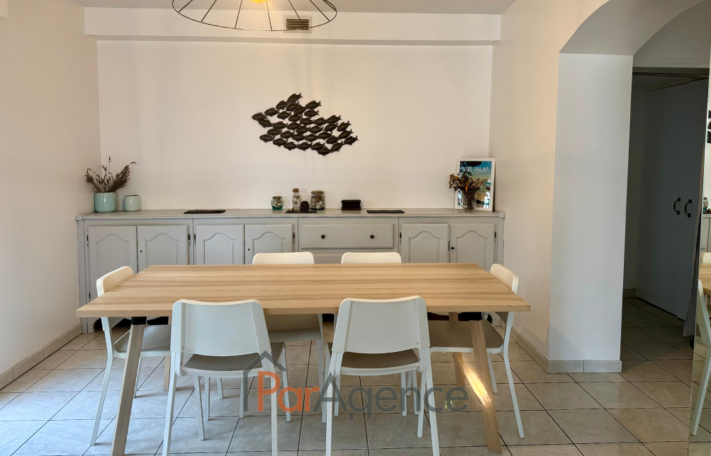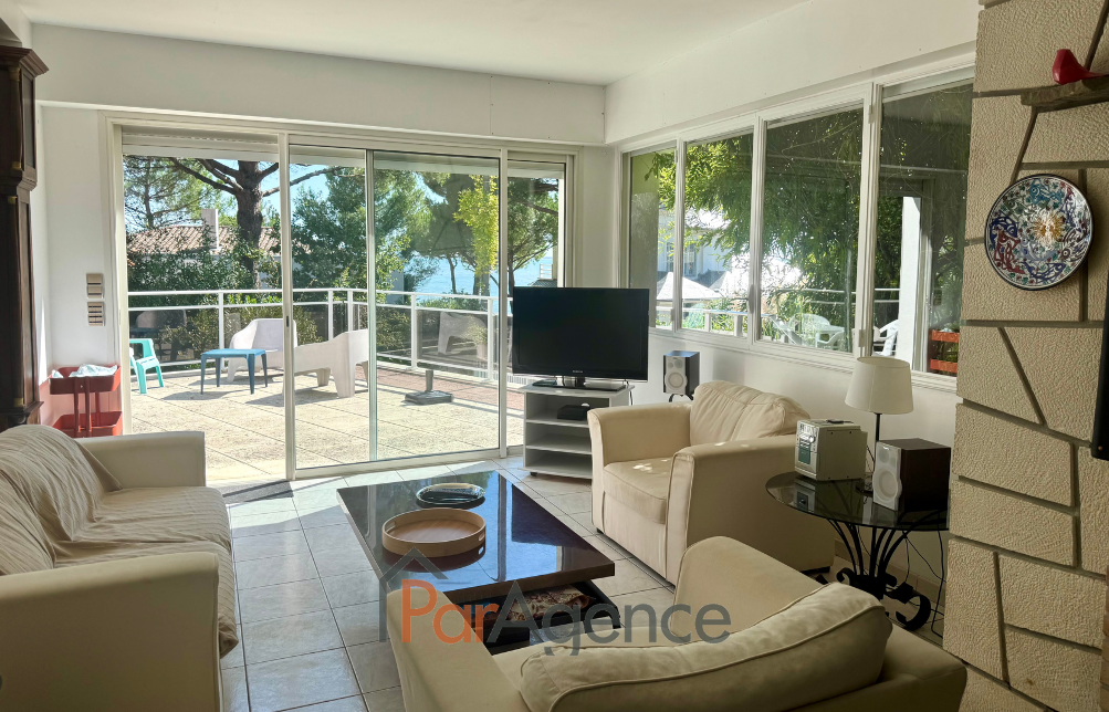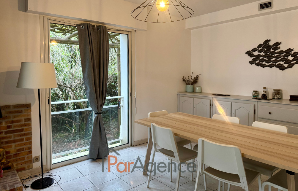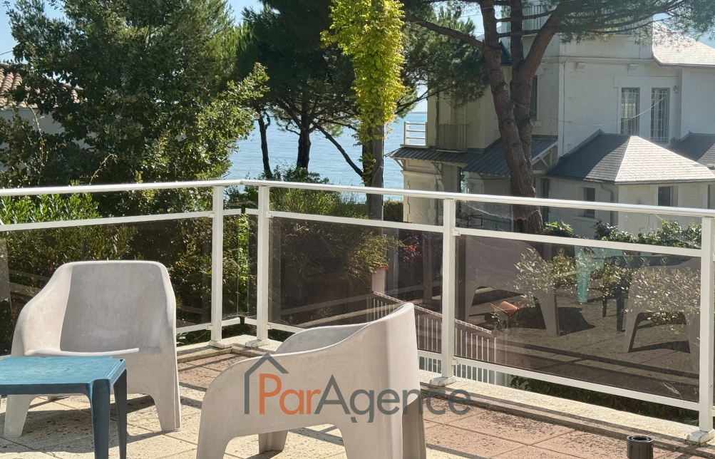 SAINT-PALAIS-SUR-MER Emplacement exceptionnel 50 m plage du Platin APPARTEMENT 4 PIECES 110 m² habitables bénéficiant d'une triple exposition, ouvrant sur une grande terrasse plein sud avec VUE SUR MER, comprenant : hall d'entrée, séjour en L avec cheminée, cuisine équipée ouvrant sur le jardin, trois chambres, salle d'eau, w.c. En rez-de-jardin un grand dégagement, une buanderie-chaufferie, une réserve et un grand garage. Possibilité de garer deux véhicules sur le jardin. Petite copropriété de 3 appartements seulement. Chauffage central au fuel par air pulsé. En annexe : une remise à vélos. Usage exclusif et privatif d'un jardin sur 3 côtés. Possibilité de garer des véhicules sur le terrain clos. Les informations sur les risques auxquels ce bien est exposé sont disponibles sur le site Géorisques : www.georisques.gouv.fr. Prix 748800 EUR dont honoraires d'agence à la charge de l'acquéreur 4.% TTC soit 28800 EUR (720000 EUR hors honoraires). https://www.par-agence.fr/nos-honoraires.