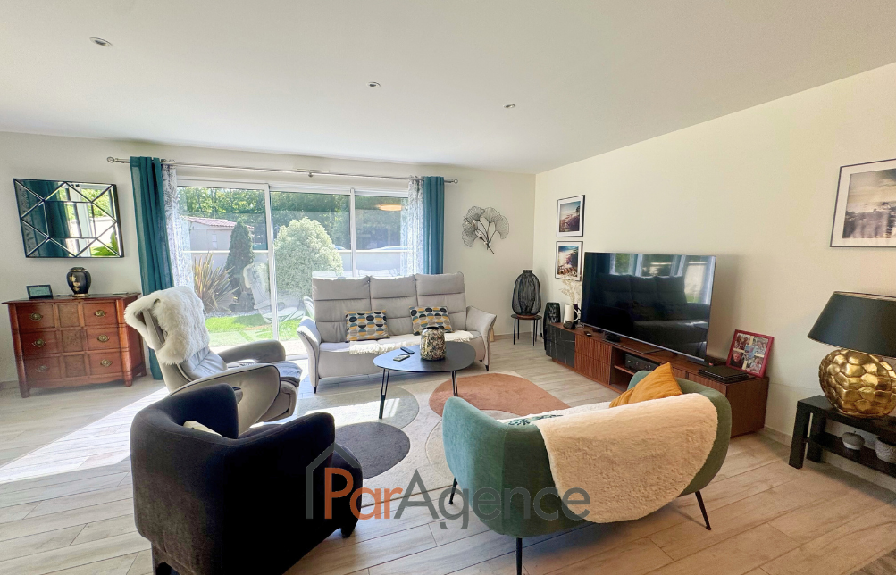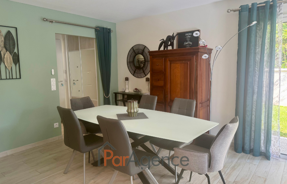 SAINT-GEORGES-DE-DIDONNE, à 400 m des premiers commerces, maison récente (construction 2019) de plain-pied comprenant, pour 113 m² habitables environ : entrée avec placard, WC, salon-séjour lumineux de 43 m² avec cuisine ouverte aménagée et équipée, dégagement, buanderie, trois chambres dont deux donnant accès sur la terrasse, salle d'eau. Chauffage au sol par pompe à chaleur. Garage carrelé attenant. Place de parking intérieure. Belles prestations. Le tout sur une parcelle close et arborée de 430 m². Les informations sur les risques auxquels ce bien est exposé sont disponibles sur le site Géorisques : www.georisques.gouv.fr. Honoraires agence à la charge de l'acquéreur. Prix 509 600 EUR dont honoraires agence à la charge de l'acquéreur 4 % TTC, soit 19 600 EUR (490 000 EUR hors honoraires). https://www.par-agence.fr/nos-honoraires. Visite virtuelle sur demande.