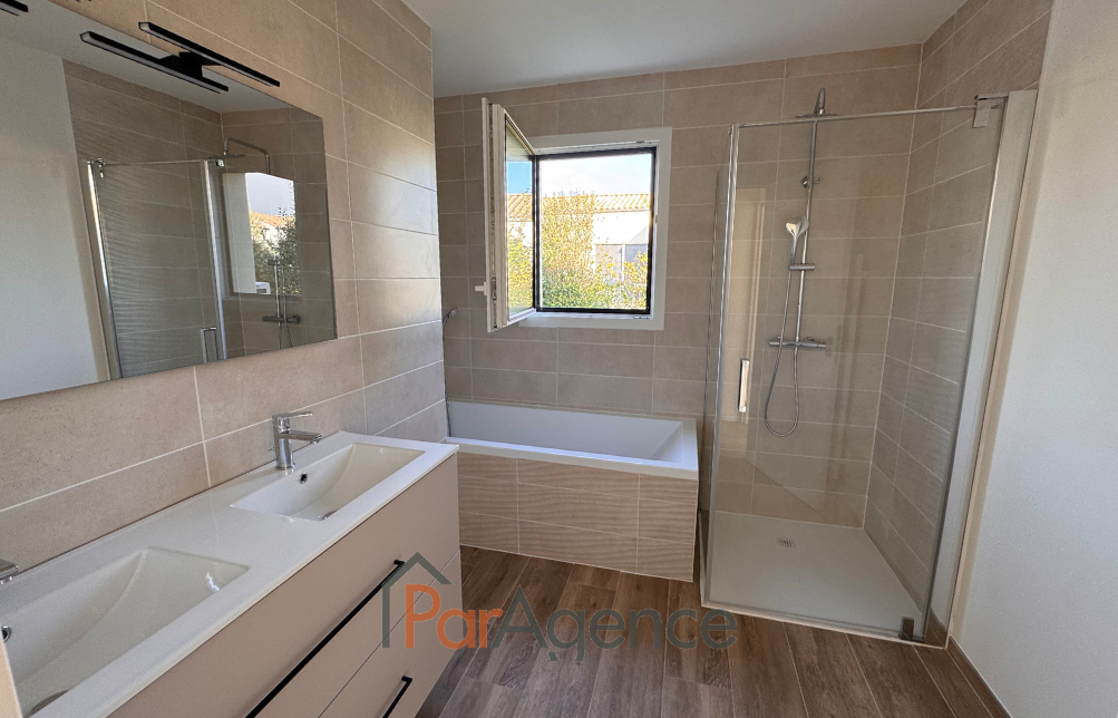 MEDIS à 450 m des premiers commerces, maison de plain-pied comprenant pour 149,80 m² habitables : Hall d'entrée avec placard, séjour en L traversant, trois chambres (possibilité 4), salle de bains, salle d'eau, 3 wc dont 2 avec lave-mains, cellier, garage.Le tout sur un terrain clos de 506 m². Les informations sur les risques auxquels ce bien est exposé sont disponibles sur le site Géorisques : www.georisques.gouv.fr. Honoraires agence à la charge de l'acquéreur. Prix 480000EUR dont honoraires d'agence à la charge de l'acquéreur 4% TTC soit 18461 EUR (461539 EUR hors honoraires). https://www.par-agence.fr/nos-honoraires.