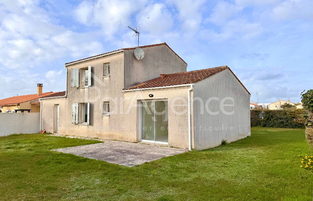 À seulement 300 m du centre-ville de Vaux-sur-Mer, dans un quartier calme et résidentiel, cette maison de quatre pièces principales offre environ 88 m² habitables. Idéalement située, elle permet un accès rapide aux commerces et services tout en préservant la quiétude. Rez-de-chaussée : Entrée avec placard, séjour donnant sur le jardin, cuisine séparée, dégagement menant à une chambre avec placard et salle d'eau attenante, wc indépendant. Étage : Palier desservant deux chambres avec placards, salle de bains et wc séparés. Le chauffage est électrique. Un garage attenant et communicant de 27 m² complète ce bien pratique et fonctionnel. Le bien est implanté sur une parcelle close d'environ 460 m². Prix 365 750 EUR dont honoraires d'agence à la charge de l'acquéreur 4,5 % TTC soit 15 750 EUR (350 000 EUR hors honoraires). En savoir plus sur nos honoraires : https://www.par-agence.fr/nos-honoraires/ Risques : www.georisques.gouv.fr