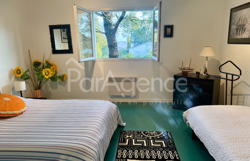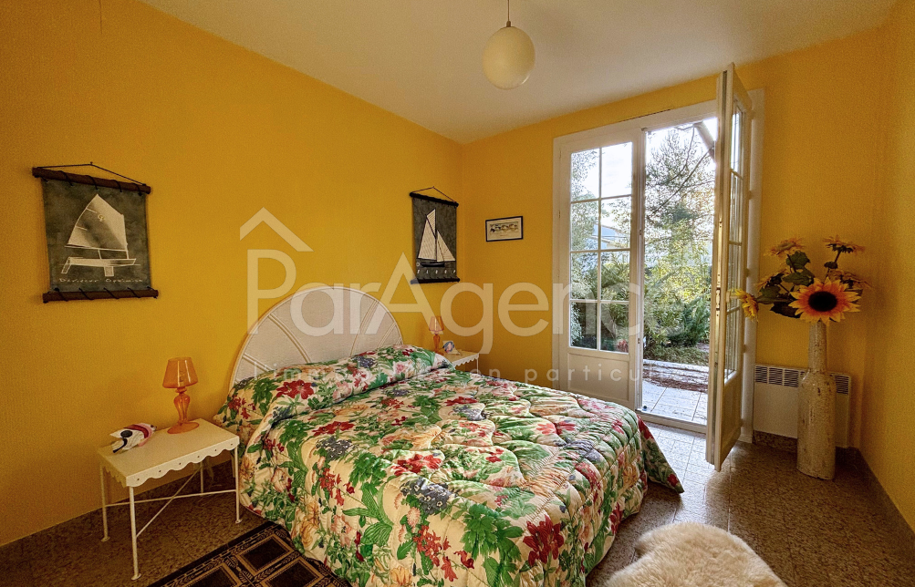 En exclusivité, au coeur du quartier résidentiel du Platin à Saint-Palais-sur-Mer, cette villa de 140 m2 habitables offre un cadre de vie idéal à seulement 200 m de la plage et 550 m du centre-ville. La partie principale s'ouvre sur un séjour lumineux donnant sur une vaste terrasse et le jardin par des baies à galandage, et une cuisine équipée fonctionnelle. Le dégagement dessert trois chambres avec placards, une salle de bains, une lingerie et un WC. Un appartement indépendant et pouvant communiquer de deux pièces propose une entrée, un séjour avec cuisine équipée, une chambre avec placards, salle d'eau et WC, idéal pour accueillir famille ou amis. Un garage de 31 m2 et une buanderie de 19 m2 complètent l'ensemble, tandis que la piscine chauffée assure des moments de détente exceptionnels. Le tout sur un terrain clos de 1 106 m2 Prix 949 000 EUR dont honoraires d'agence à la charge de l'acquéreur 4 % TTC soit 36 500 EUR (912 500 EUR hors honoraires).En savoir plus sur nos honoraires : https://www.par-agence.fr/nos-honoraires/Risques : www.georisques.gouv.fr