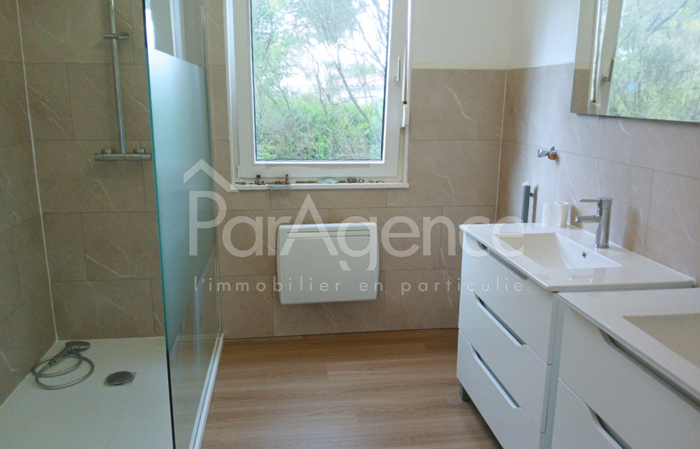 Idéalement située à seulement 600 m du lac et des commerces, dans un quartier calme et résidentiel de Saint-Palais-sur-Mer, cette maison de plain-pied offre 101 m² habitables baignés de lumière et un cadre de vie paisible. Elle séduit par sa vue dégagée et son exposition sud, sud-ouest, parfaitement orientée pour profiter des terrasses et du jardin. Moderne et fonctionnelle, elle combine confort et praticité pour une vie de famille agréable. Rez-de-chaussée : Entrée avec placard, séjour lumineux donnant sur la terrasse et le jardin, cuisine américaine aménagée ouverte sur le salon, dégagement desservant trois chambres dont une équipée d'un placard, salle d'eau avec douche à l'italienne et WC avec lave-mains. Chauffage électrique pour un confort au quotidien. Sous-sol : Intégralement sous la maison, il propose un garage de 50,72 m² et 50 m² de surface de rangement, offrant un potentiel de stockage et d'aménagement complémentaire. Le tout sur un terrain clos et arboré de 2 319 m². Prix 634 400 EUR dont honoraires d'agence à la charge de l'acquéreur 4% TTC soit 24 400 EUR (610 000 EUR hors honoraires)En savoir plus sur nos honoraires : https://www.par-agence.fr/nos-honoraires/ Risques : www.georisques.gouv.fr