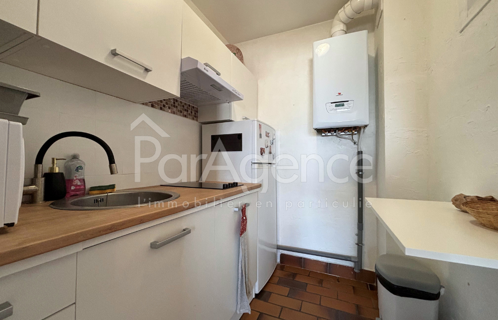 Idéalement situé à Royan, à seulement 200 m du marché central et 500 m de la plage de la Grande Conche, cet appartement de 34,63 m2 Carrez offre un cadre de vie pratique et lumineux. Implanté au deuxième étage d'une petite copropriété bien entretenue, il profite d'une belle exposition et d'une proximité immédiate avec les commerces, transports et services du centre-ville. L'entrée dessert un séjour accueillant ouvrant sur un balcon, ainsi qu'une cuisine fonctionnelle et une salle de bains avec WC séparés. L'appartement est équipé d'un chauffage au gaz de ville. En complément, un parking privatif vient sécuriser votre stationnement en centre-ville. Vendu loué, ce bien constitue un excellent investissement locatif. Prix 138 600 EUR dont honoraires d'agence à la charge de l'acquéreur 5 % TTC soit 6 600 EUR (132 000 EUR hors honoraires). En savoir plus sur nos honoraires : https://www.par-agence.fr/nos-honoraires/ Risques : www.georisques.gouv.fr Visite virtuelle sur demande.