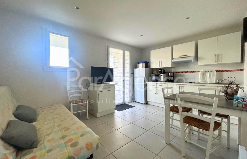 SAINT-PALAIS-SUR-MER à 400 m de la Plage du Platin et 700 m du centre APPARTEMENT de 2 Pièces 32,51 m² offre un cadre de vie privilégié entre mer et commerces. Idéal en résidence secondaire comme en investissement locatif, il séduit par sa fonctionnalité et son agréable extérieur. Le salon lumineux avec cuisine américaine entièrement équipée s'ouvre sur une terrasse couverte de 13,5 m² prolongée par un jardin, invitant à profiter des beaux jours. Un dégagement avec rangement dessert une chambre confortable, une salle d'eau et des wc séparés. Chauffage électrique. Vendu meublé. Une cour privative attenante avec portail permet le stationnement de deux véhicules, un véritable atout à proximité immédiate de la plage. Prix 215 200 EUR dont honoraires d'agence à la charge de l'acquéreur 5% TTC soit 10 200 EUR (205 000 EUR hors honoraires)En savoir plus sur nos honoraires : https://www.par-agence.fr/nos-honoraires/ Risques : www.georisques.gouv.fr