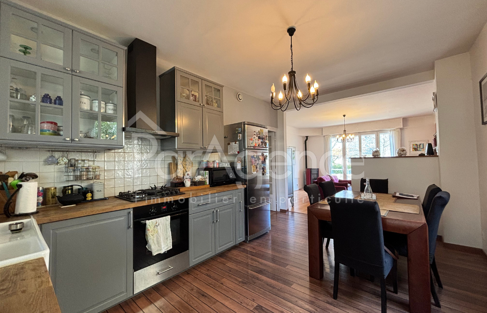 Dans le quartier très recherché du Parc à Royan, à seulement 400 mètres de la plage et à proximité immédiate des commodités, cette maison développe environ 248 m² habitables répartis sur trois niveaux. Elle offre de beaux volumes et une organisation idéale pour une grande famille ou pour recevoir.Au rez-de-chaussée surélevé, l'entrée avec placard mène à un salon chaleureux équipé d'un poêle à granulés ouvrant sur un balcon. La salle à manger s'ouvre sur une cuisine conviviale et une véranda lumineuse permettant d'accéder au jardin ainsi qu'au bureau situé en rez-de-jardin. Une chambre avec salle d'eau privative, un dégagement avec rangements et des WC indépendants avec lave-mains complètent ce niveau.À l'étage, le palier dessert trois chambres dont une avec salle d'eau privative et accès à une terrasse, ainsi qu'une salle de bains et des WC séparés.Le rez-de-jardin propose un séjour avec cuisine, deux chambres dont une avec cabinet de toilette, une salle d'eau, des WC et une chaufferie. Un abri de jardin et un stationnement sur la parcelle viennent parfaire l'ensemble.Prix 759 000 EUR dont honoraires d'agence à la charge de l'acquéreur 4 % TTC soit 29 000 EUR (730 000 EUR hors honoraires).En savoir plus sur nos honoraires : https://www.par-agence.fr/nos-honoraires/Risques : www.georisques.gouv.fr