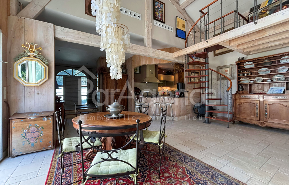 SAINT-PALAIS-SUR-MER Idéalement située à seulement 450 m de la piste cyclable et 800 m de la plage de la Grande Côte, à proximité du golf, cette maison d'exception de 235 m2 habitables allie élégance, volumes généreux et confort., elle offre un cadre de vie calme et lumineux, avec terrasse et piscine, dans une résidence sécurisée. Rez-de-chaussée : Hall d'entrée accueillant, bureau, séjour cathédrale de 65,70 m2 avec cuisine américaine équipée et cheminée-insert, exposé sud-est et sud-ouest, ouvrant sur terrasse et piscine. Une chambre avec salle d'eau, dressing et WC, ainsi que deux autres chambres avec salle d'eau, mezzanine, cellier et buanderie, WC supplémentaire avec lave-mains. Appartement indépendant : Séjour avec cuisine ouverte, mezzanine mansardée, salon, chambre avec salle d'eau et WC, parfait pour famille ou invités. Sous-sol de 90 m2 accessible par monte-charge. Prestations complètes : SPA, piscine 4x8 couverte, pompe à chaleur air/air, abri de jardin et carport. Une maison où chaque espace invite à la détente et au bien-être. Le tout Implanté sur une parcelle boisée et arborée de 2 930 m2 sans vis-à-vis Prix 1 248 000 EUR dont honoraires d'agence à la charge de l'acquéreur 4 % TTC soit 48 000 EUR (1 200 000 EUR hors honoraires). En savoir plus sur nos honoraires : https://www.par-agence.fr/nos-honoraires/ Risques : www.georisques.gouv.fr