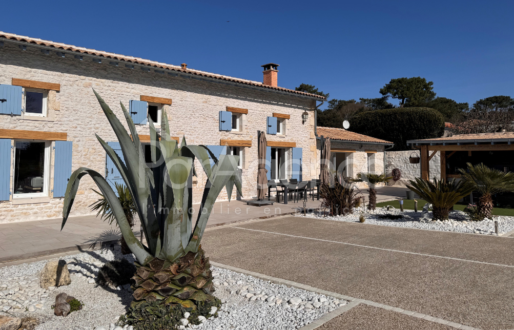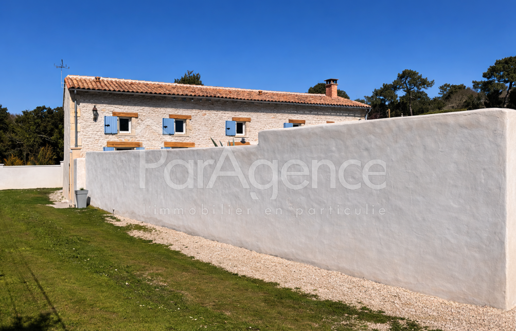 À seulement 1 000 m de la plage du Platin et à 1 600 m du marché, cette superbe maison charentaise entièrement rénovée de 189 m² habitables allie charme traditionnel et confort moderne. elle offre un cadre de vie lumineux et convivial, idéal pour une famille ou des amateurs de belles pierres rénovées avec goût. Rez-de-chaussée : l'entrée dessert un salon chaleureux avec cheminée, une salle à manger ouverte sur une cuisine équipée, une chambre, une salle d'eau avec WC et un cellier fonctionnel. Le chauffage au sol électrique basse tension garantit un confort optimal. À l'étage : un palier spacieux mène à trois chambres lumineuses et une salle d'eau avec WC, chauffées par des radiateurs fonte aluminium, alliant confort et charme. Annexes : un auvent de 18 m² avec bar pour profiter des repas en extérieur et une cave en sous-sol complètent ce bien d'exception. Le tout sur un terrain de 791 m² avec possibilité d'édifier un garage. Prix 832000EUR dont honoraires agence à la charge de l'acquéreur 4% TTC soit 32000EUR (800000EUR hors honoraires). En savoir plus sur nos honoraires : https://www.par-agence.fr/nos-honoraires/ Risques : www.georisques.gouv.fr