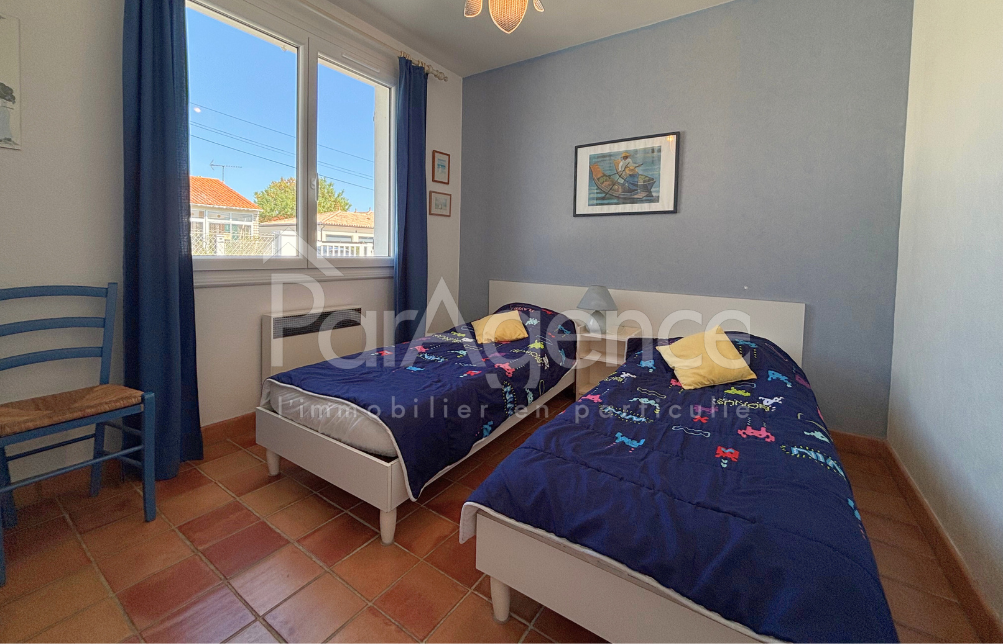 A Meschers-sur-Gironde, dans un environnement résidentiel paisible à seulement 1 500 m du centre-ville et des commodités, cette maison de plain-pied édifiée sur un terrain clos et arboré de 540 m2 offre un cadre idéal pour une résidence principale comme secondaire, avec des volumes bien pensés et une circulation fluide. L'entrée dessert un salon lumineux ouvrant sur la terrasse, invitant à profiter pleinement des extérieurs dès les beaux jours. La salle à manger prolonge harmonieusement l'espace de vie, la cuisine séparée, elle aussi ouverte sur la terrasse. Le coin nuit accueille deux chambres avec placards, une salle d'eau fonctionnelle et des WC indépendants. En sous-sol, un vaste garage de 44 m2 complète l'ensemble, offrant de belles capacités de stationnement et de rangement. Chauffage électrique. Prix 278 200 EUR dont honoraires d'agence à la charge de l'acquéreur 5 % TTC soit 13 200 EUR (265 000 EUR hors honoraires). En savoir plus sur nos honoraires : https://www.par-agence.fr/nos-honoraires/ Risques : www.georisques.gouv.fr