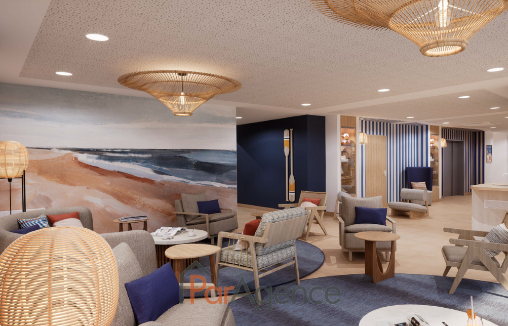 ROYAN, à 150 mètres de la plage de la Grande Conche et à proximité immédiate du centre-ville. Un appartement de 40.95 m2 habitables, situé au rez-de-chaussée d'une résidence neuve et sécurisée comprenant : une entrée, un séjour / cuisine ouvrant sur terrasse de 11,62 m2, chambre avec placard, un bureau, une salle de bains, W.C. Béneficiez d'un accés à la piscine et à la laverie. Chauffage au gaz de ville. En annexe : une place de parking en sous-sol. Livraison immédiate. Vendu meublé. Les informations sur les risques auxquels ce bien est exposé sont disponibles sur le site Géorisques : www.georisques.gouv.fr. Honoraires agence à la charge du vendeur. https://www.par-agence.fr/nos-honoraires. Visite virtuelle sur demande.