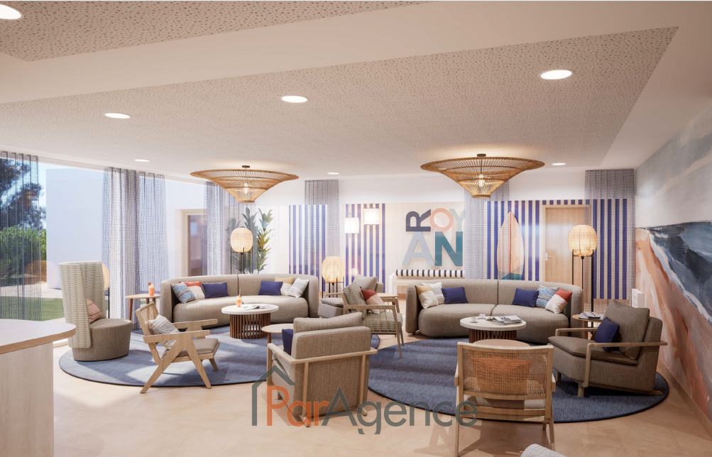 ROYAN, à 150 mètres de la plage de la Grande Conche et à proximité immédiate du centre-ville. Un appartement de 40.20 m² habitables, situé au quatrième et dernier étage d'une résidence neuve et sécurisée comprenant : Une entrée, un séjour / cuisine ouvrant sur un balcon de 10,45 m², chambre avec placard, un bureau, une salle de bains, W.C. Béneficiez d'un accés à la piscine et à la laverie. Chauffage au gaz de ville. En annexe : une place de parking en sous-sol. Livraison immédiate. Vendu meublé. Les informations sur les risques auxquels ce bien est exposé sont disponibles sur le site Géorisques : www.georisques.gouv.fr. Honoraires agence à la charge du vendeur. https://www.par-agence.fr/nos-honoraires. Visite virtuelle sur demande.