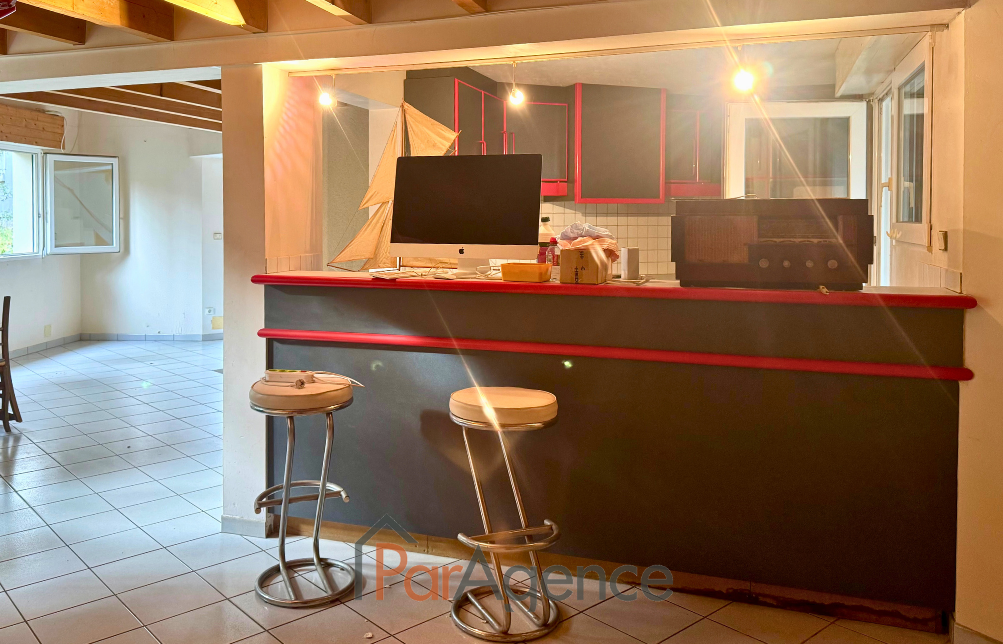 SAINT-PALAIS-SUR-MER A 290 m de la plage du Platin et 350 m du centre-ville, maison de 110 m² habitables environ comprenant au rez-de-chaussée : séjour avec cheminée, ouvrant sur terrasse et jardin, exposé sud, cuisine donnant sur terrasse couverte, une pièce attenante pouvant être transformée en chambre, w.c, A l'étage coursive desservant deux chambres, salle de bains avec w.c. Petit garage attenant et communiquant avec la cuisine. Le tout sur un beau terrain boisé de 739 m². Les informations sur les risques auxquels ce bien est exposé sont disponibles sur le site Géorisques : www.georisques.gouv.fr. Honoraires agence à la charge du vendeur. https://www.par-agence.fr/nos-honoraires.