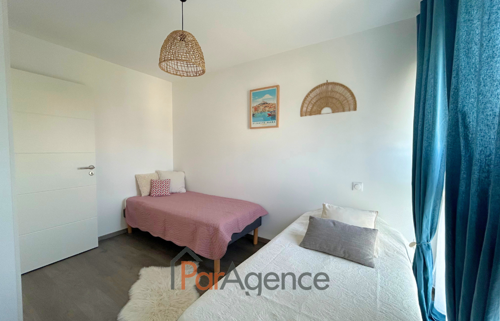 EXCLUSIVITE SAINT-PALAIS-SUR-MER 250 m plage du PLATIN Bel appartement de 3PP pour 76,40 m² en parfait état, au premier et dernier étage d'une petite copropriété récente et comprenant: entrée avec placard, salon et cuisine à l'américaine équipée ouvrant sur balcon, deux chambres avec placard, salle de bains, wc. Cellier. Chauffage gaz de ville. Deux parkings privatifs et un local commun à vélos. Les informations sur les risques auxquels ce bien est exposé sont disponibles sur le site Géorisques : www.georisques.gouv.fr. https://www.par-agence.fr/nos-honoraires. Honoraires agence à la charge de l'acquéreur. Prix 433 600EUR dont honoraires d'agence à la charge de l'acquéreur 4,5% TTC soit 18600EUR (415 000EUR hors honoraires).