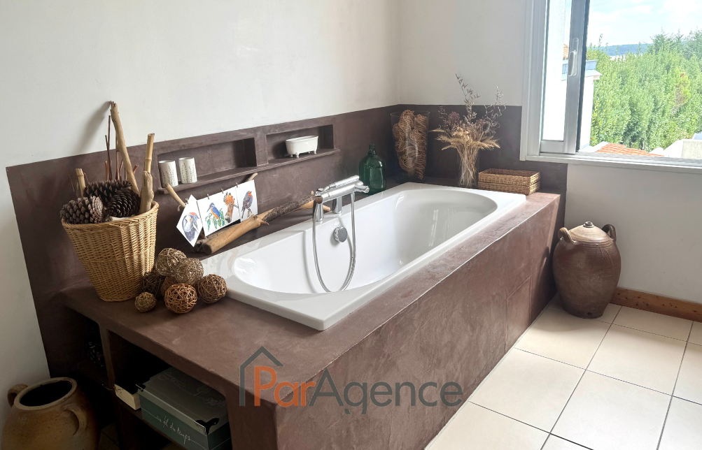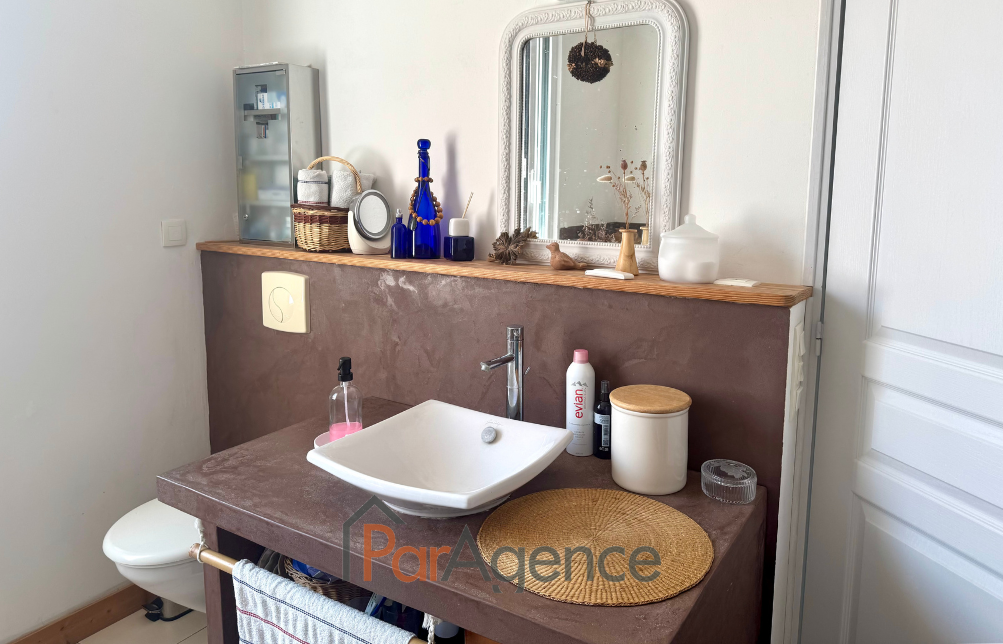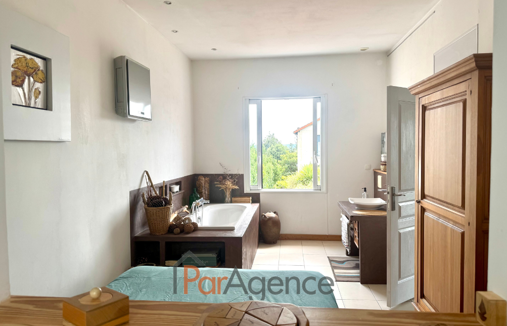 SAINT-GEORGES-DE-DIDONNE à 100 m du sentier de la Corniche et à 450 m du centre, une maison comprenant pour 111 m² habitables environ : Au rez-de-chaussée : entrée, bureau, dégagement, une chambre avec lavabo, dégagement, w.c., hall, une chambre, salle d'eau avec w.c., cuisine d'été. A l'étage : séjour avec cuisine équipée donnant sur un petit balcon, buanderie, une chambre avec salle de bains et w.c. et bureau. Climatisation réversible. En annexes : cellier, terrasse couverte, 3 appentis. Le tout sur un terrain clos de 258 m² avec possibilité de se garer sur la parcelle. Les informations sur les risques auxquels ce bien est exposé sont disponibles sur le site Géorisques : www.georisques.gouv.fr. Honoraires agence à la charge de l'acquéreur. Prix 425300 EUR dont honoraires d'agence à la charge de l'acquéreur 4.5% TTC soit 18300 EUR (407000 EUR hors honoraires). https://www.par-agence.fr/nos-honoraires.