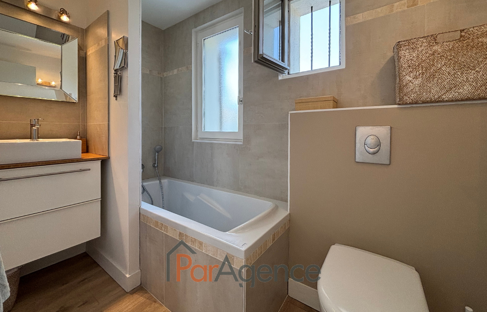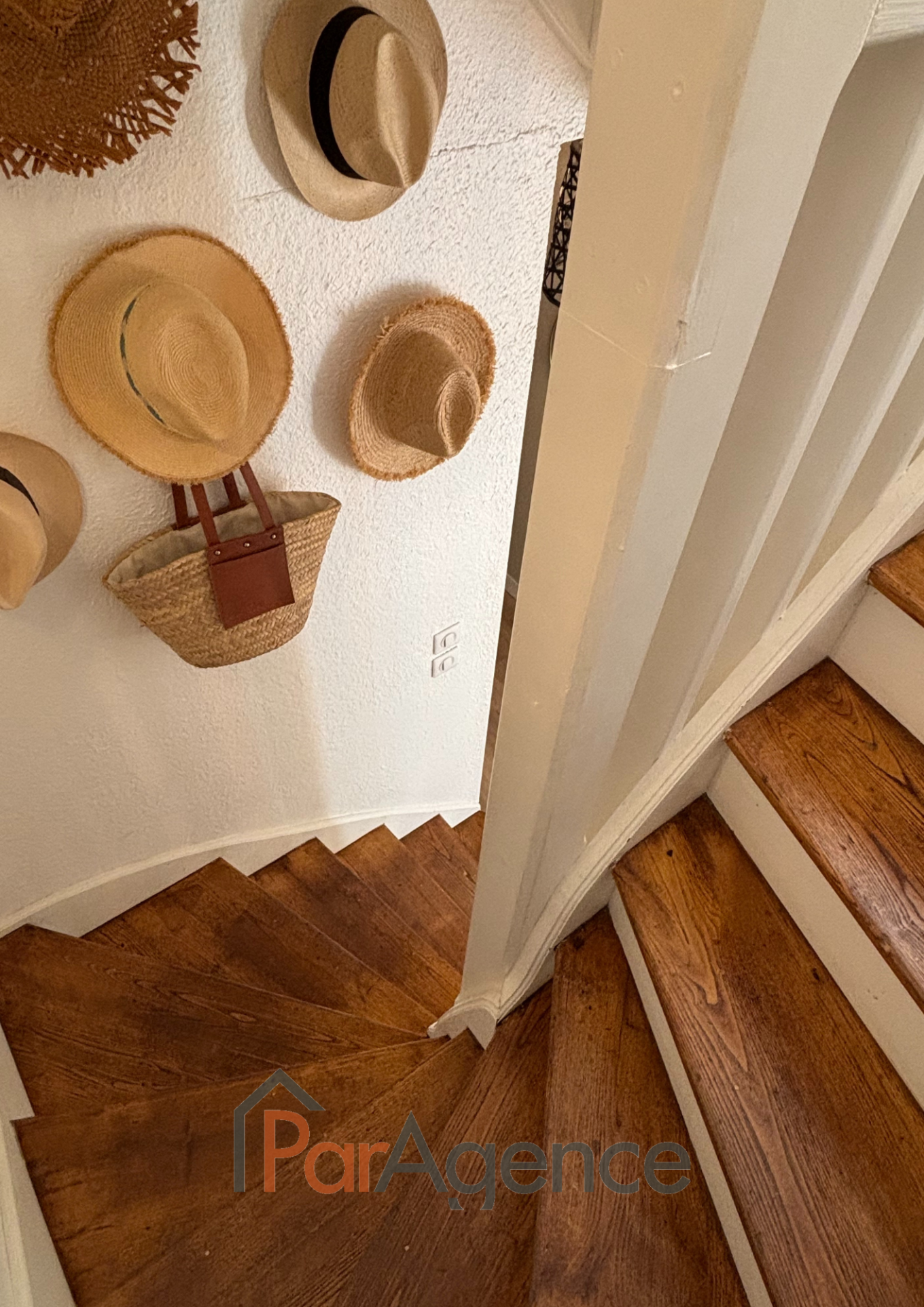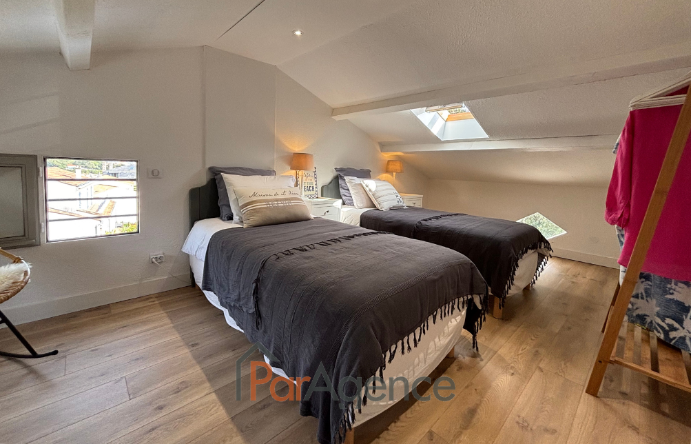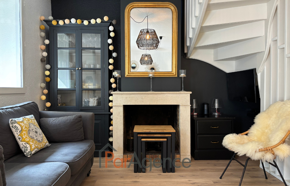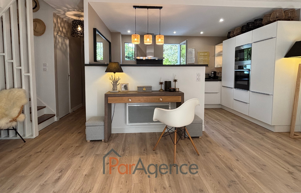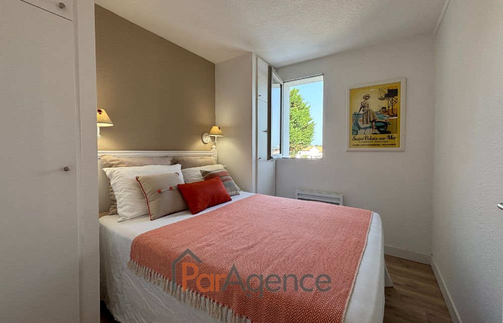 EXCLUSIVITE SAINT-PALAIS-SUR-MER 100 m plage de Nauzan, dans une petite copropriété, VILLA entièrement rénovée en 2017 comprenant pour 66 m² habitables environ + 22 m² de surface utilisable : - au rez-de-chaussée : entrée, séjour avec cheminée donnant sur terrasse et jardinet, cuisine ouverte entièrement équipée, buanderie avec wc. Au premier étage : deux chambres dont une avec salle d'eau, salle de bains avec w.c. Au 2ème étage : deux chambres mansardées dont une grande avec vue sur mer. Possibilité d'accéder au jardin sans traverser la maison, 2 parkings privatifs devant la porte d'entrée et un garage en sous-sol à proximité immédiate de la maison. Les informations sur les risques auxquels ce bien est exposé sont disponibles sur le site Géorisques : www.georisques.gouv.fr. Prix 488800 EUR dont honoraires d'agence à la charge de l'acquéreur 4.% TTC soit 18800 EUR (470000 EUR hors honoraires). https://www.par-agence.fr/nos-honoraires.