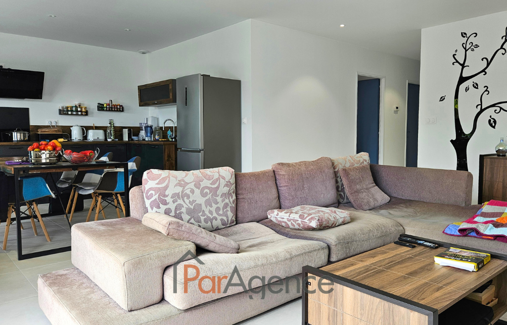 VAUX SUR MER - ENTRE PONTAILLAC ET CENTRE-VILLE, maison récente de trois pièces principales en parfait état d'une surface habitable de 82 m² environ comprenant: entrée, séjour avec cuisine à l'américaine équipée ouvrant sur terrasse de 35 m² et jardin exposée sud-ouest, deux chambres avec placard, salle d'eau, wc. En annexe : un garage attenant. Terrain clos et arboré de 244 m². Chauffage au sol au gaz de ville. Les informations sur les risques auxquels ce bien est exposé sont disponibles sur le site Géorisques : www.georisques.gouv.fr. Honoraires agence à la charge de l'acquéreur. Prix 386600 EUR dont honoraires d'agence à la charge de l'acquéreur 4,5% TTC soit 16600 EUR (3700000 EUR hors honoraires). https://www.par-agence.fr/nos-honoraires.