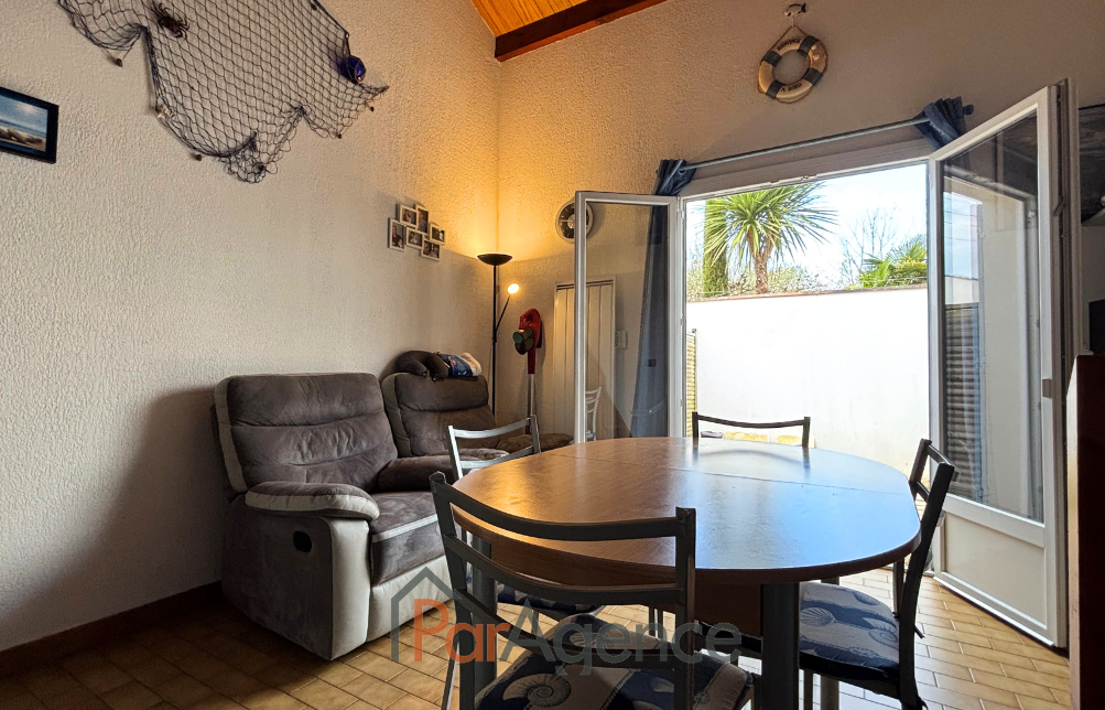 SAINT-PALAIS-SUR-MER, maison de 45,36 m² loi Carrez et offrant 15 m² de surface utile comprenant : Entrée, séjour avec cuisine ouverte aménagée donnant accès sur une terrasse, chambre avec placard, salle d'eau, et WC. A l'étage : Deux chambres en enfilade. En annexe, une place de parking privative. Piscine commune au sein de la copropriété. Chauffage électrique par radiants.Les informations sur les risques auxquels ce bien est exposé sont disponibles sur le site Géorisques : www.georisques.gouv.fr. Honoraires agence à la charge de l'acquéreur. Prix 215 200 EUR dont honoraires d'agence à la charge de l'acquéreur 5 % TTC soit 10 200 EUR (205 0000 EUR hors honoraires). https://www.par-agence.fr/nos-honoraires.