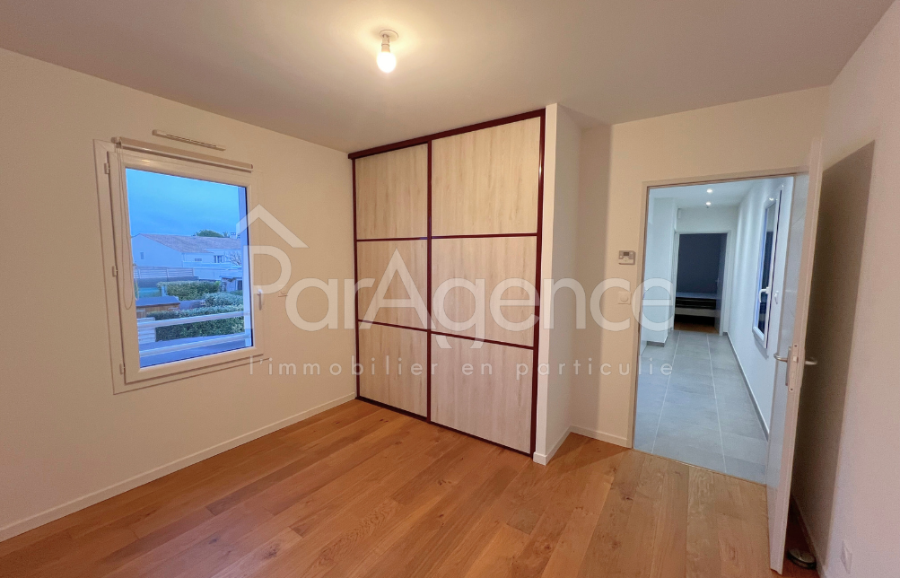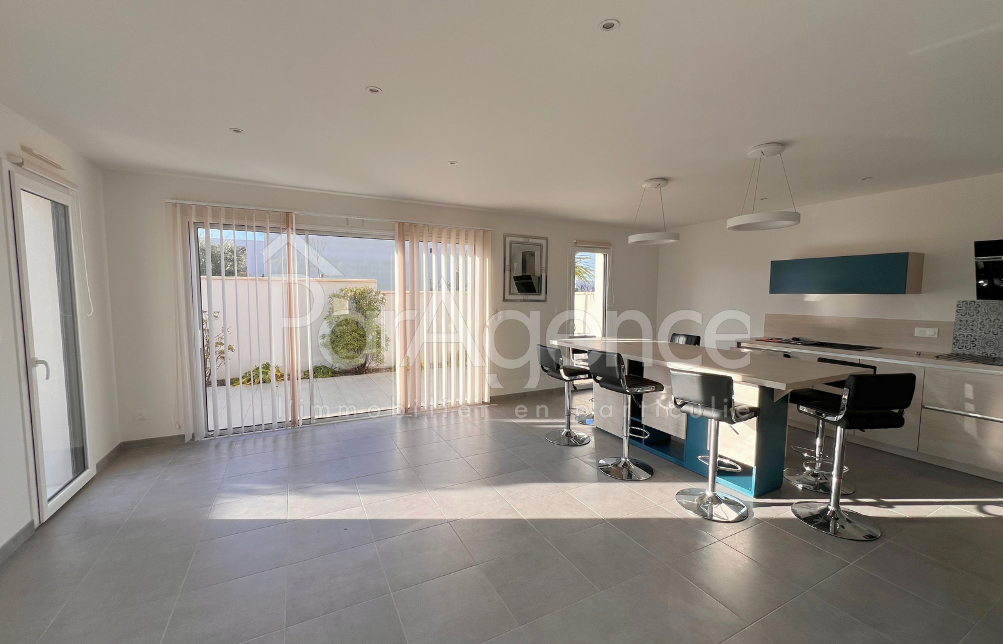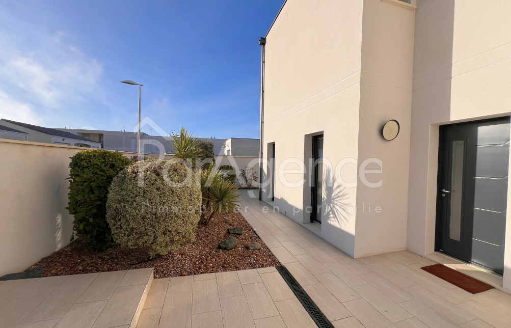 Dans un environnement recherché, au sein d'un quartier calme et résidentiel à proximité immédiate du lac de Vaux-sur-Mer ainsi que des commerces, cette maison récente et contemporaine développe 108,85 m² habitables. Fonctionnelle et lumineuse, elle offre un cadre de vie agréable.Au rez-de-chaussée, le hall d'entrée avec placard distribue une belle pièce de vie baignée de lumière, ouverte sur le jardin et la terrasse. La cuisine aménagée et équipée, au style moderne, s'intègre harmonieusement à l'ensemble. Un cellier avec accès direct au garage facilite l'organisation quotidienne. WC indépendants. Ce niveau propose également une suite parentale avec salle d'eau privative et dressing, ainsi que la possibilibté d'aménager un coin bureau sous l'escalier.À l'étage, deux chambres avec placards aménagés, une salle d'eau et des WC indépendants complètent l'espace nuit. La parcelle close et arborée est parfaitement entretenue.La parcelle est close, arborée et en parfait état.Possibilité de stationner deux véhicules devant la maison. La maison est louée meublée de manière succincte, laissant toute liberté d'aménagement.Disponible de suite. Risques : www.georisques.gouv.fr